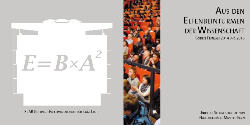 Von 2004 bis 2013 war es uns vergönnt, die Festival-Vorträge in der Buchreihe „Aus den Elfenbeintürmen der Wissenschaft“ zu veröffentlichen. Doch ist es immer weniger zumutbar, von Wissenschaftlern mitten im Forschungs- und Lehrbetrieb einen allgemeinverständlichen Artikel in deutscher Sprache zu erwarten. Stattdessen soll mit Fotobroschüren wie dieser an großartige Vorträge und beeindruckende Momente der Science Festivals erinnert werden.