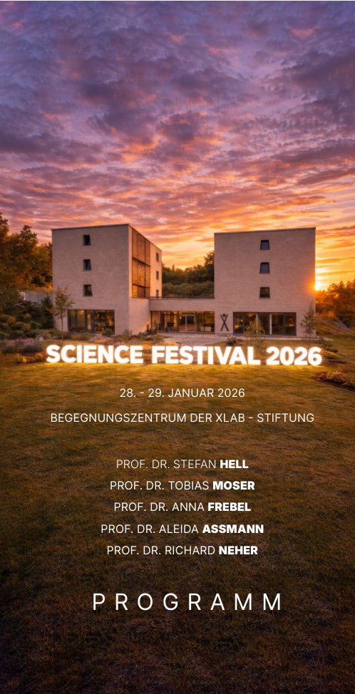 Erstmals findet das Science Festival im neuen Begegnungszentrum der XLAB Stiftung statt. An zwei Tagen geben herausragende Wissenschaftlerinnen und Wissenschaftler Einblicke in ihre Forschung – von Europäischer Zeitgeschichte über Super-Resolution-Mikroskopie und Hörforschung bis zur Astrophysik und zu RNA-Viren. Mit den diesjährigen Vorträgen kehren die Wissenschaftler:innen zum Science Festival zurück, um die Einweihung des Begegnungszentrums zu begleiten. Die Vortragsreihe wurde anlässlich des Baus des XLAB-Schülerlabors ins Leben gerufen.